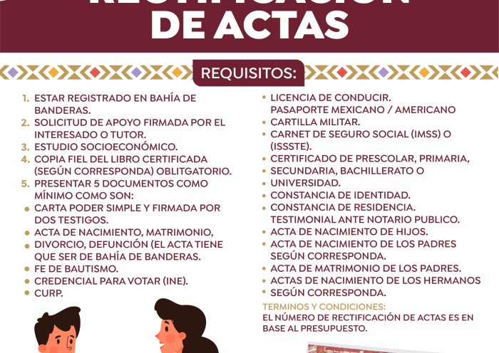 REDACCIÓN El Gobierno Municipal de Bahía de Banderas, a través del Registro Civil, puso en marcha una campaña para la rectificación de actas de nacimiento,…
