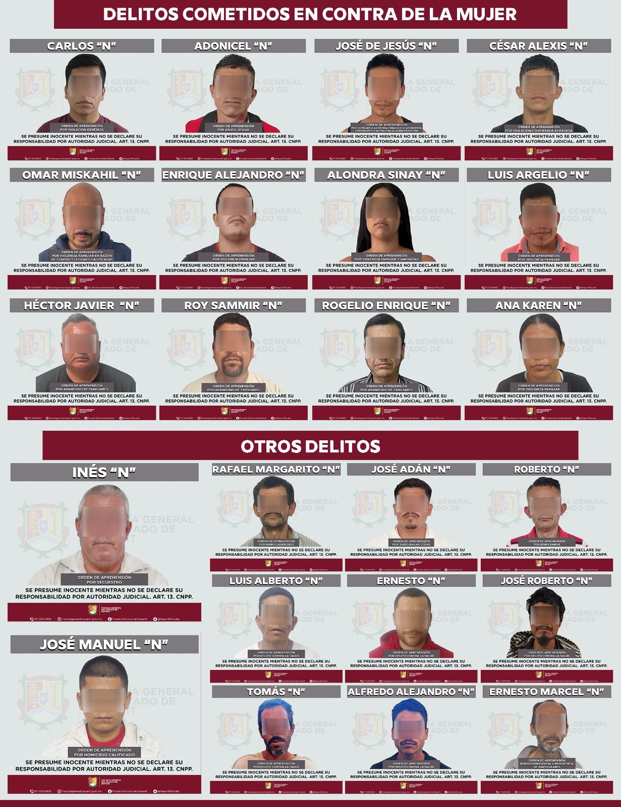 En el marco de la estrategia permanente para garantizar el acceso a la justicia y atender los d3l1t0s de v10l3nc14 d3 g3n3r0, la Fiscalía General del Estado de Nayarit informó que del 24 al 26 de febrero se ejecutaron 27 órdenes de aprehensión por diversos ilícitos en distintos municipios de la entidad.