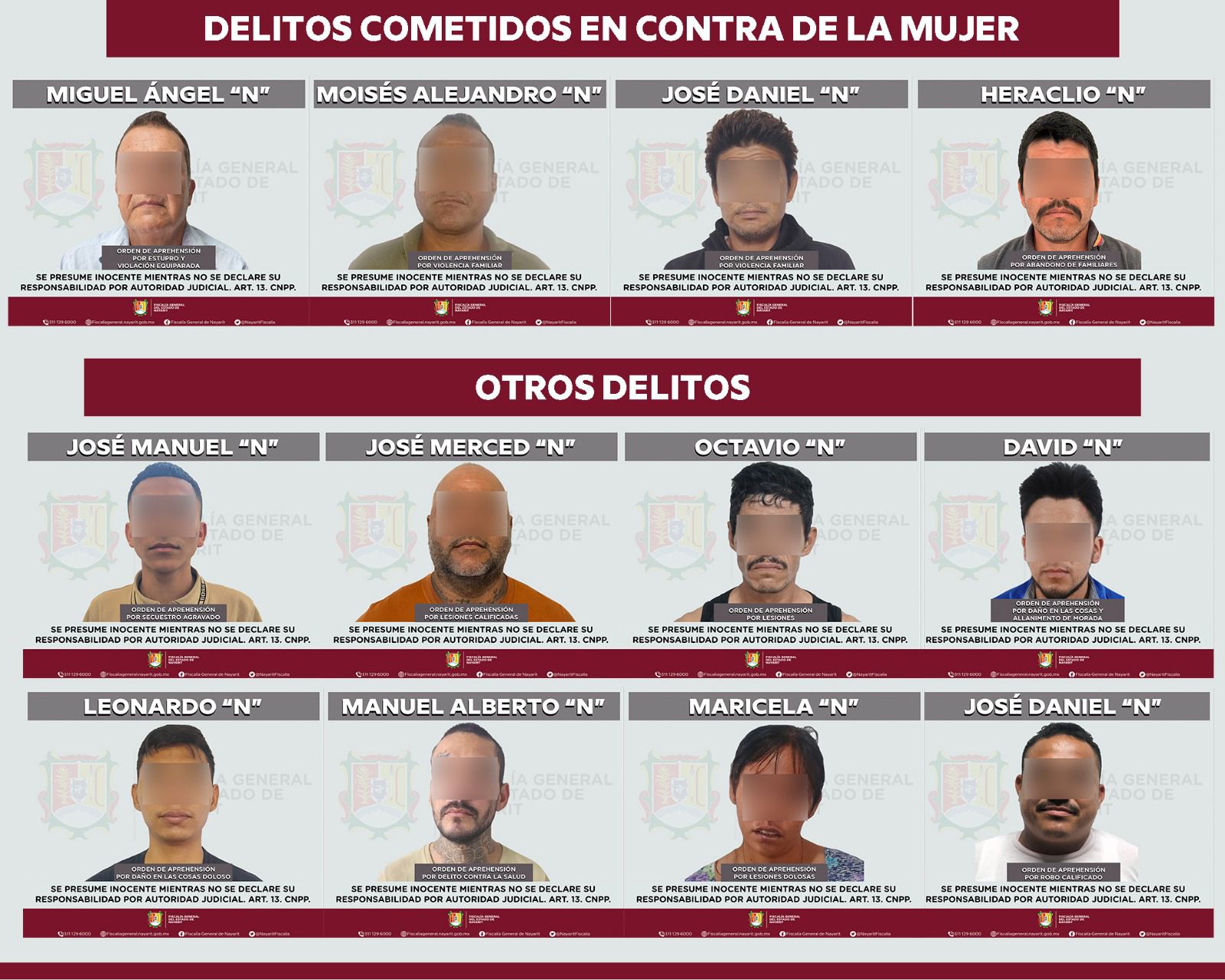 Tepic, Nayarit.- Continuando las acciones para combatir la violencia de género y fortalecer el acceso a la justicia, la Fiscalía General del Estado de Nayarit ejecutó, los días 7 y 8 de febrero del presente año, un total de 15 órdenes de aprehensión por diversos delitos en distintos municipios de la entidad.