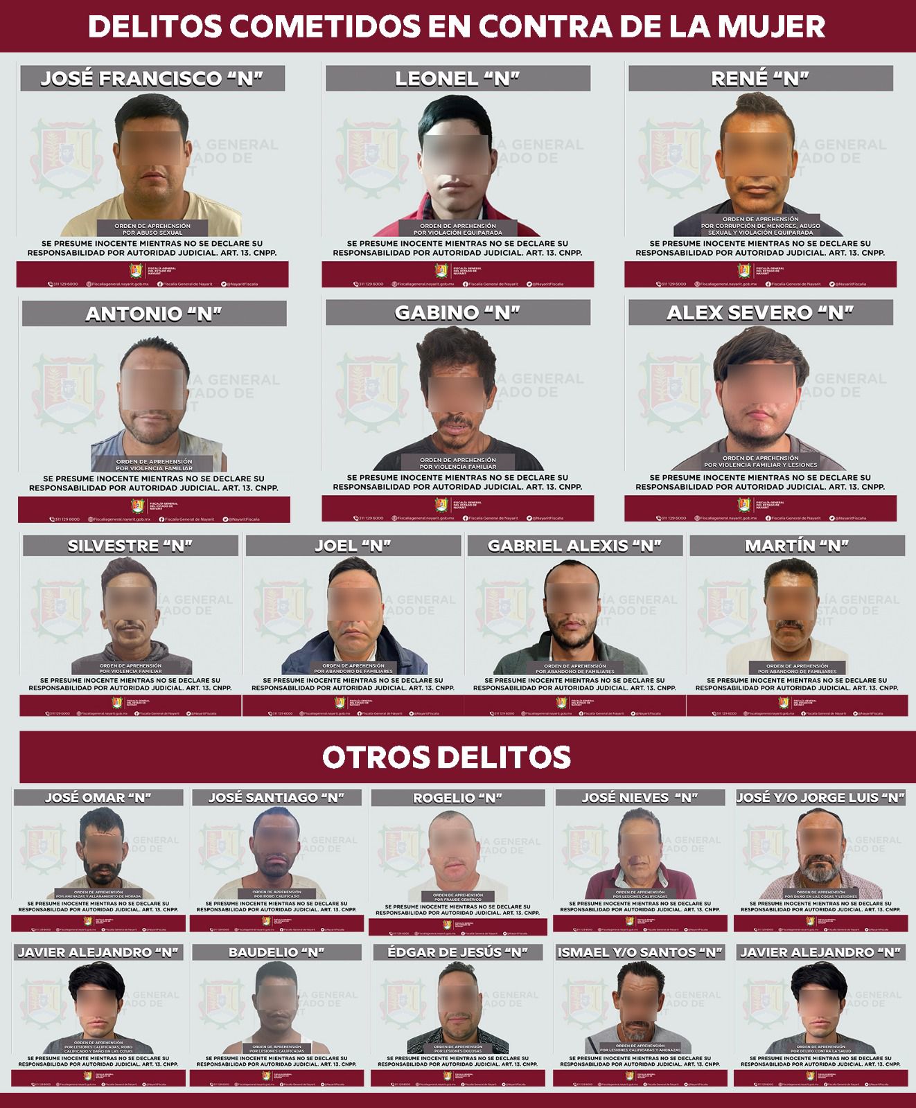 Tepic, Nayarit. – Al continuar las acciones para combatir la v10l3nc14 d3 gén3r0 y fortalecer el acceso a la justicia, la Fiscalía General del Estado de Nayarit ejecutó los días 31 de enero, 1 y 2 de febrero del actual, un total de 23 órdenes de aprehensión por diversos d3l1t0s en distintos municipios de la entidad.