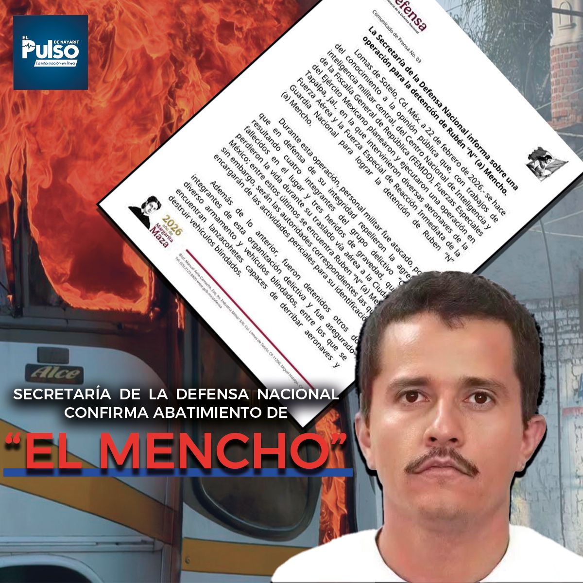La Secretaría de la Defensa Nacional confirmó que Rubén “N” (a) Mencho, líder del Cártel Jalisco Nueva Generación, fue abatido durante un operativo militar en Tapalpa.