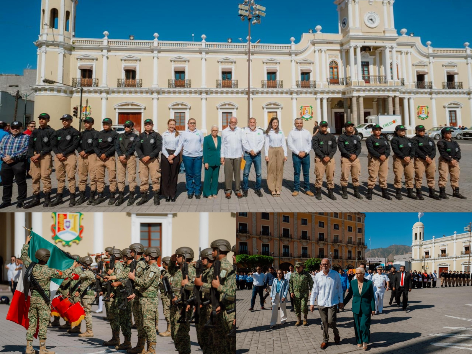 Acompañado por Beatriz Estrada Martínez y autoridades civiles, militares y representantes de los poderes Legislativo y Judicial, se llevaron a cabo Honores a la Bandera, colocación de ofrenda floral y guardia de honor en memoria del Benemérito de las Américas.