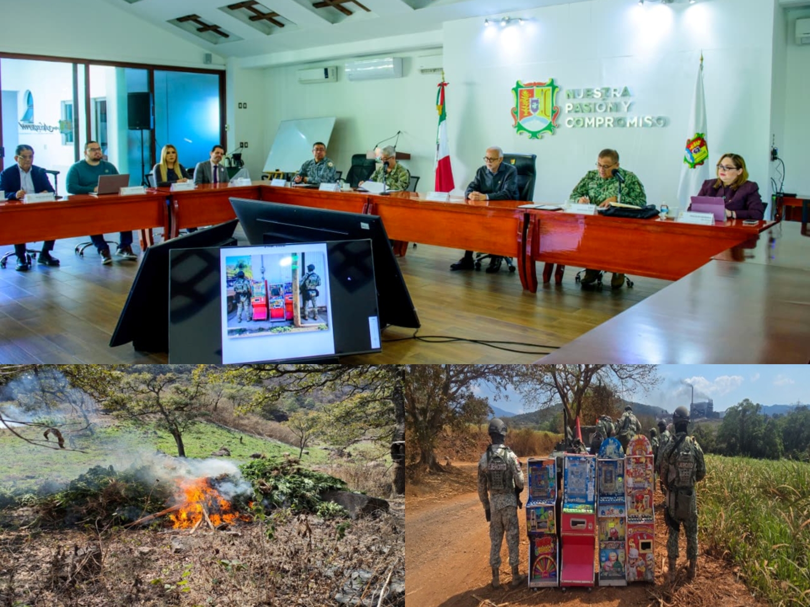 El gobernador de Nayarit, Miguel Ángel Navarro Quintero, dio seguimiento a los resultados de los operativos de seguridad realizados en las últimas horas en distintos municipios, durante la sesión de la Mesa Estatal para la Construcción de la Paz y la Seguridad.