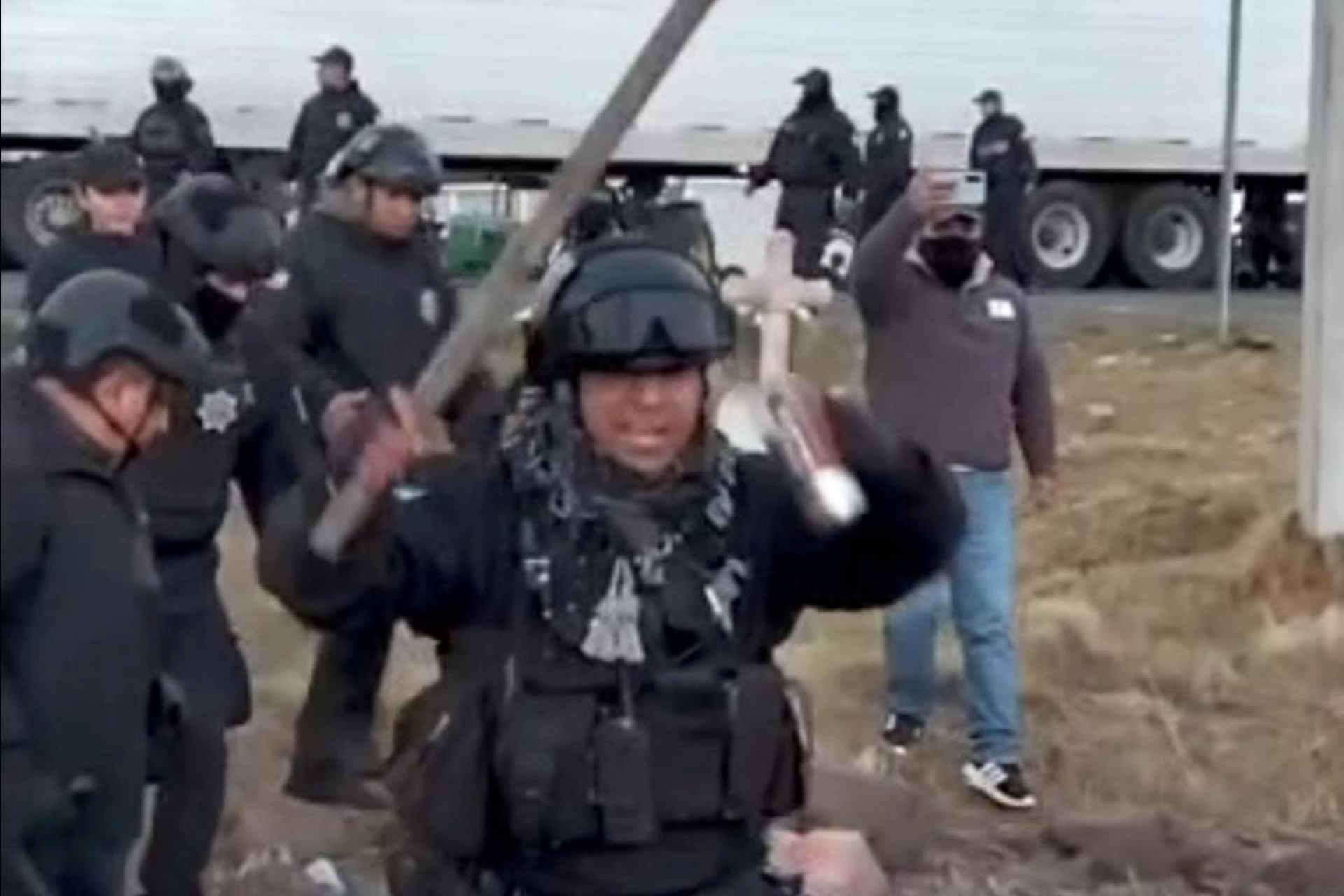 En Tlaxcala, granaderos del gobierno del estado desalojaron a productores y transportistas que mantenían bloqueada la carretera Arco Norte, a la altura de Madero, en el municipio de Nanacamilpa y Calpulalpan.