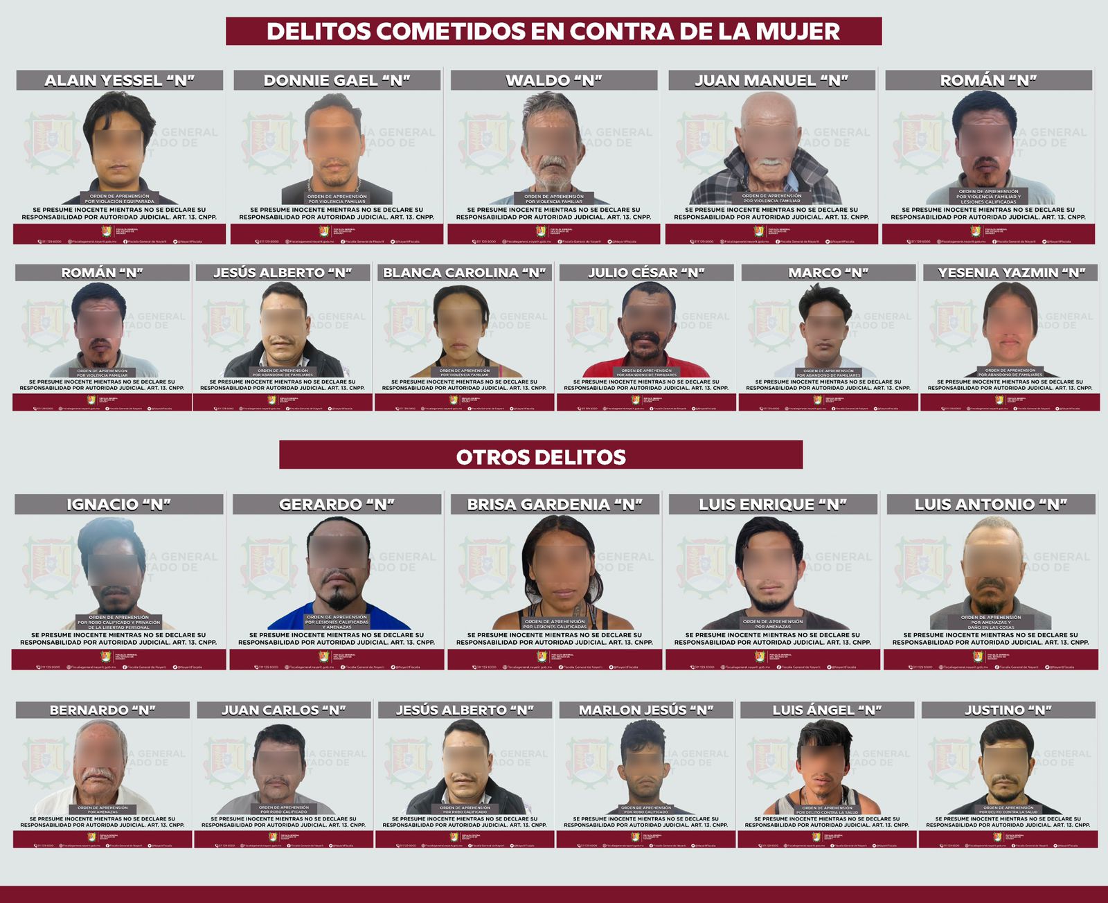 Asimismo, se cumplimentaron 11 órdenes de aprehensión por otros d3l1t0s, entre los que destacan: