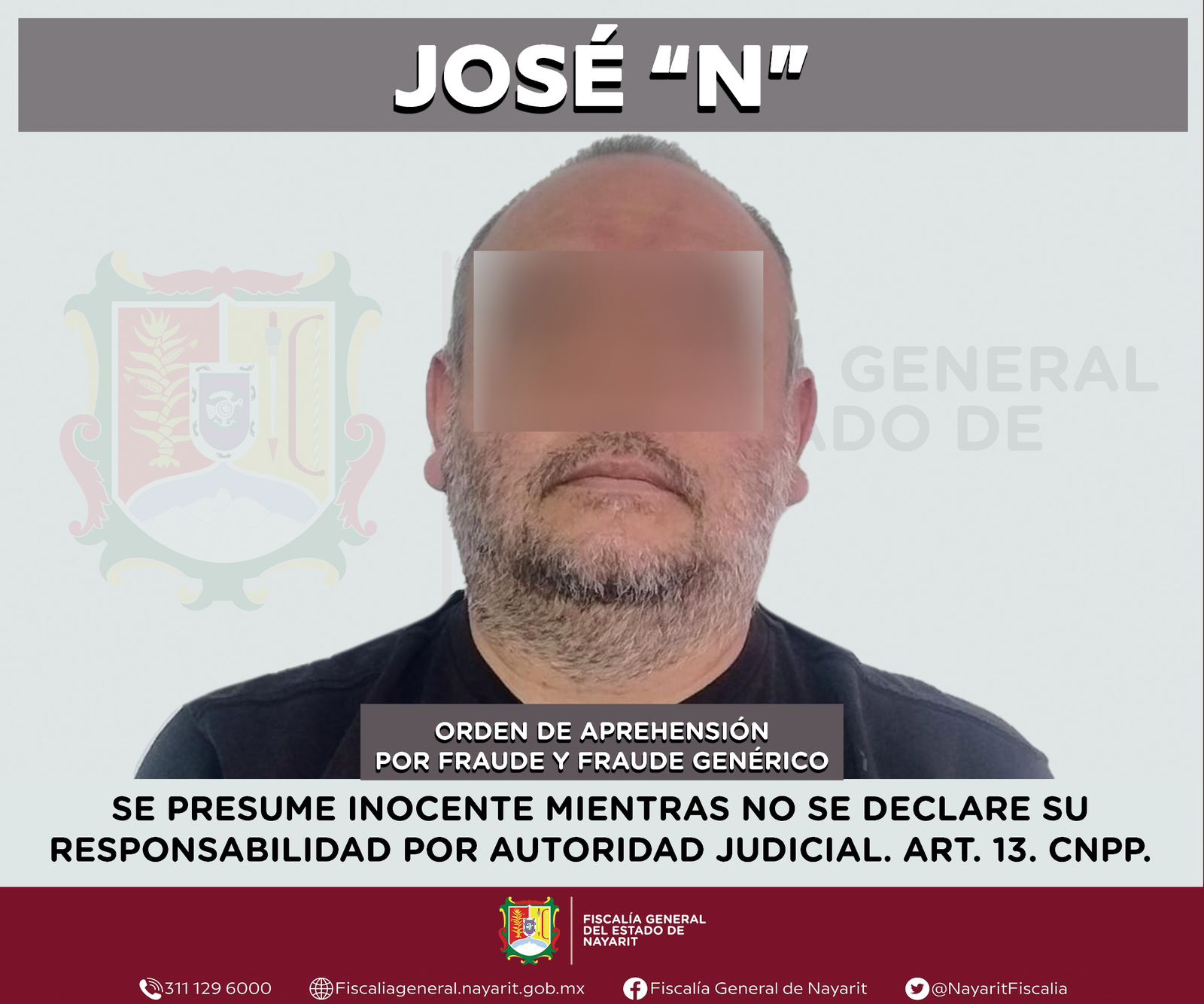Elementos de la Agencia de Investigación Criminal de Nayarit ejecutaron en Tepic una orden de aprehensión contra José “N”, señalado por su presunta participación en delitos de fraude y fraude genérico en agravio de un hombre, cuya identidad se mantiene en reserva.