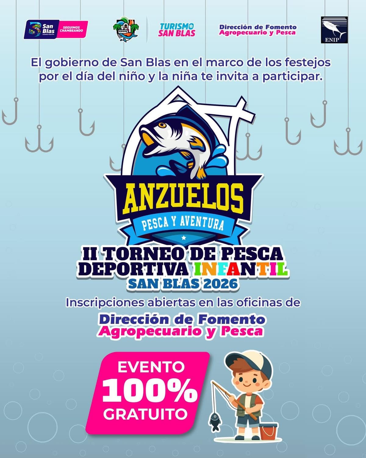 El presidente municipal de San Blas, José “Pepito” Barajas, promueve el II Torneo de Pesca Deportiva Infantil 2026 “Anzuelos, Pesca y Aventura”, como parte de los festejos por el Día del Niño y la Niña, fomentando la convivencia familiar y el contacto con la naturaleza.