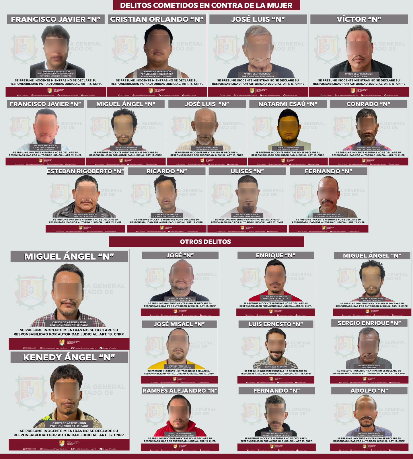 La Fiscalía General del Estado de Nayarit informó que del 11 al 13 de abril fueron ejecutadas 26 órdenes de aprehensión por diversos delitos en distintos municipios de la entidad.