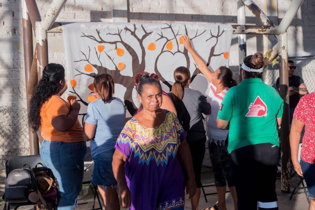 La actividad consistió en que las participantes escribieran en papelitos naranjas lo que las hace fuertes y libres, los cuales colocaron en un árbol simbólico que representó el crecimiento y las raíces de los valores de las mujeres. Con ello se fomentó la reflexión, el reconocimiento de capacidades y la unión comunitaria contra la violencia de género.