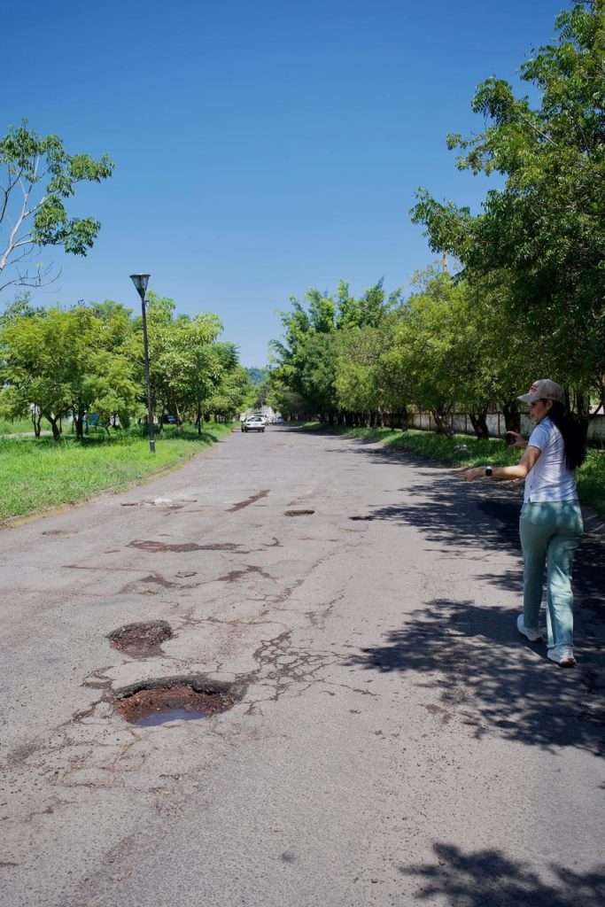 La presidenta municipal de Tepic, Ing. Geraldine Ponce, supervisó las condiciones de las vialidades del fraccionamiento Lagos del Country, donde instruyó que este martes comiencen los trabajos de rehabilitación en la zona.
