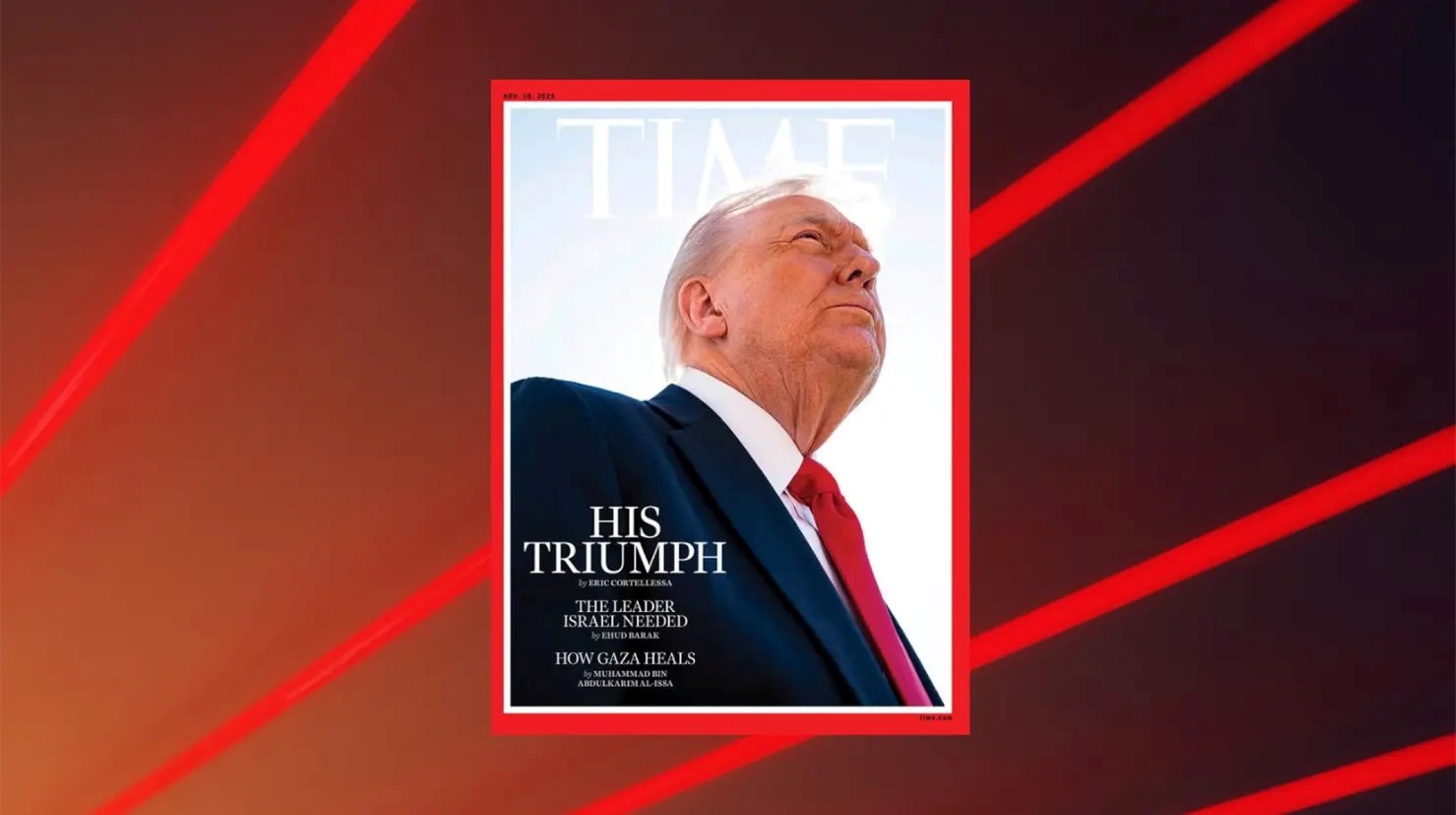 Pese a la controversia por la imagen, la edición de Time destaca los recientes logros diplomáticos de Trump en Medio Oriente. Bajo el titular «Su triunfo», la publicación elogia su papel en el acuerdo de paz firmado en Gaza, resaltando su liderazgo durante las negociaciones.