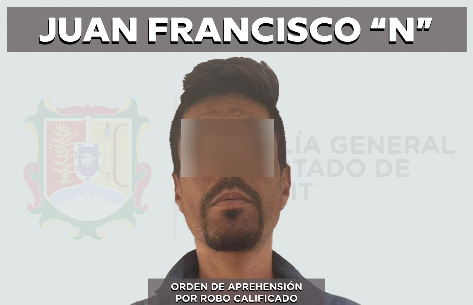 La Fiscalía General del estado de Nayarit informa que elementos de la Agencia de Investigación Criminal ejecutaron una orden de aprehensión en la ciudad de Tepic contra Juan Francisco “N”, por su probable participación en hechos que la legislación vigente tipifica como delito de r0b0 calificado, cometido en perjuicio de una persona de sexo masculino, cuya identidad se mantiene bajo reserva por respeto a su derecho a la privacidad e integridad.