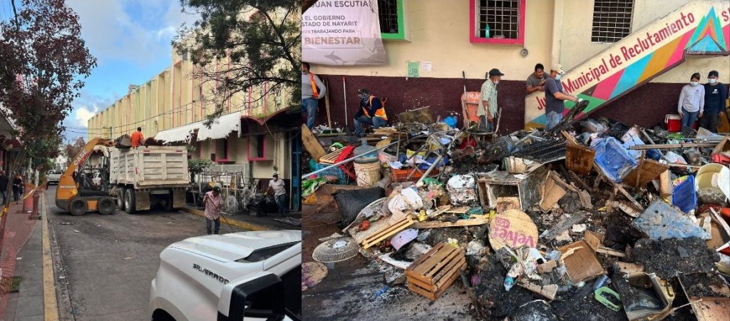 El gobierno del estado de Nayarit, que encabeza Miguel Ángel Navarro Quintero, continúa avanzando en la recuperación del Mercado Juan Escutia, gracias al trabajo conjunto de 93 trabajadoras y trabajadores de distintas dependencias estatales, quienes han logrado limpiar el 100 % de la zona afectada y retirar 255 metros cúbicos de material siniestrado. Este domingo se recolectaron 84 toneladas de residuos.