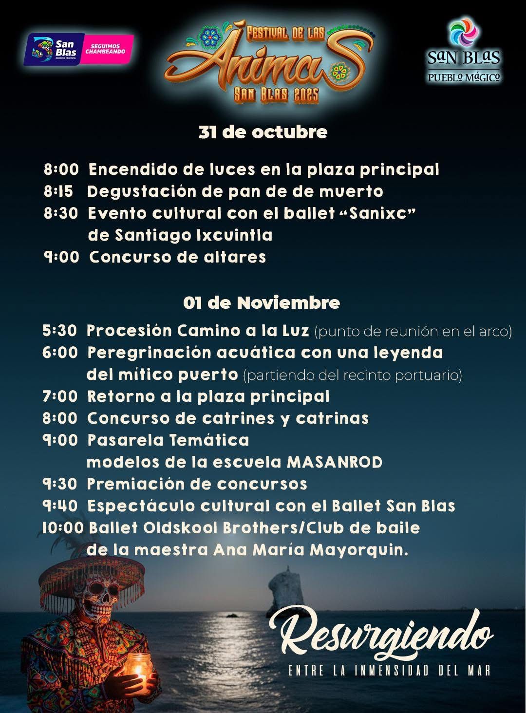 El presidente municipal José “Pepito” Barajas invita a toda la ciudadanía y visitantes a disfrutar del Festival de las Ánimas San Blas 2025, que se llevará a cabo los días 31 de octubre y 1 de noviembre bajo el lema “Resurgiendo entre la inmensidad del mar”.