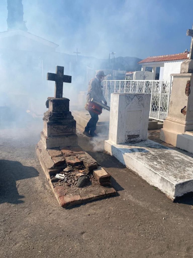 Asimismo, personal del área de Vectores y Zoonosis realizó labores de nebulización en distintos cementerios, a fin de disminuir la densidad del mosquito y proteger la salud de la población durante las visitas a los camposantos.
