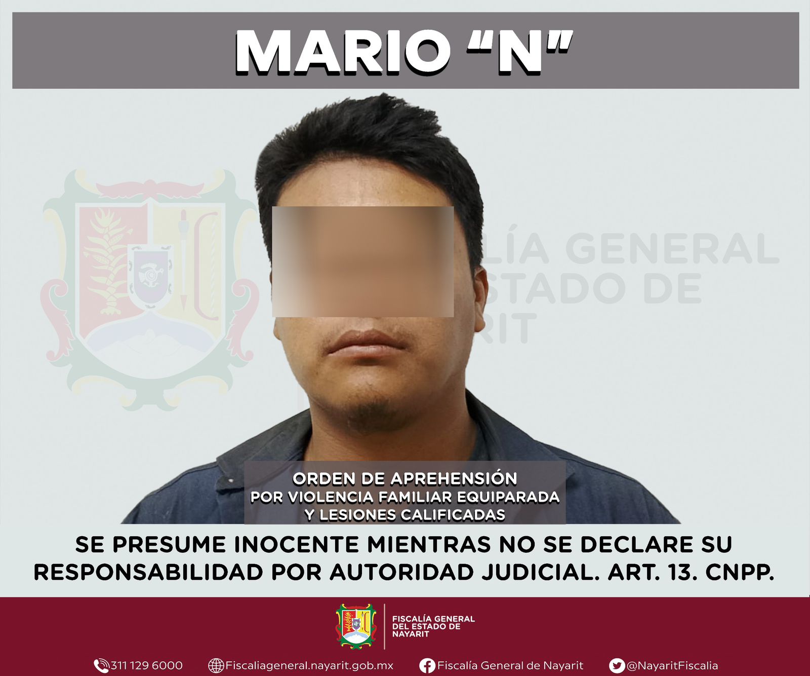 La Fiscalía General del Estado de Nayarit informa que elementos de la Agencia de Investigación Criminal cumplimentaron una orden de aprehensión en el municipio de Xalisco contra Mario “N”, por su probable participación en hechos que la ley tipifica como delitos de v10l3nc14 f4m1l14r equiparada y l3s10n3s cal1f1c4d4s.