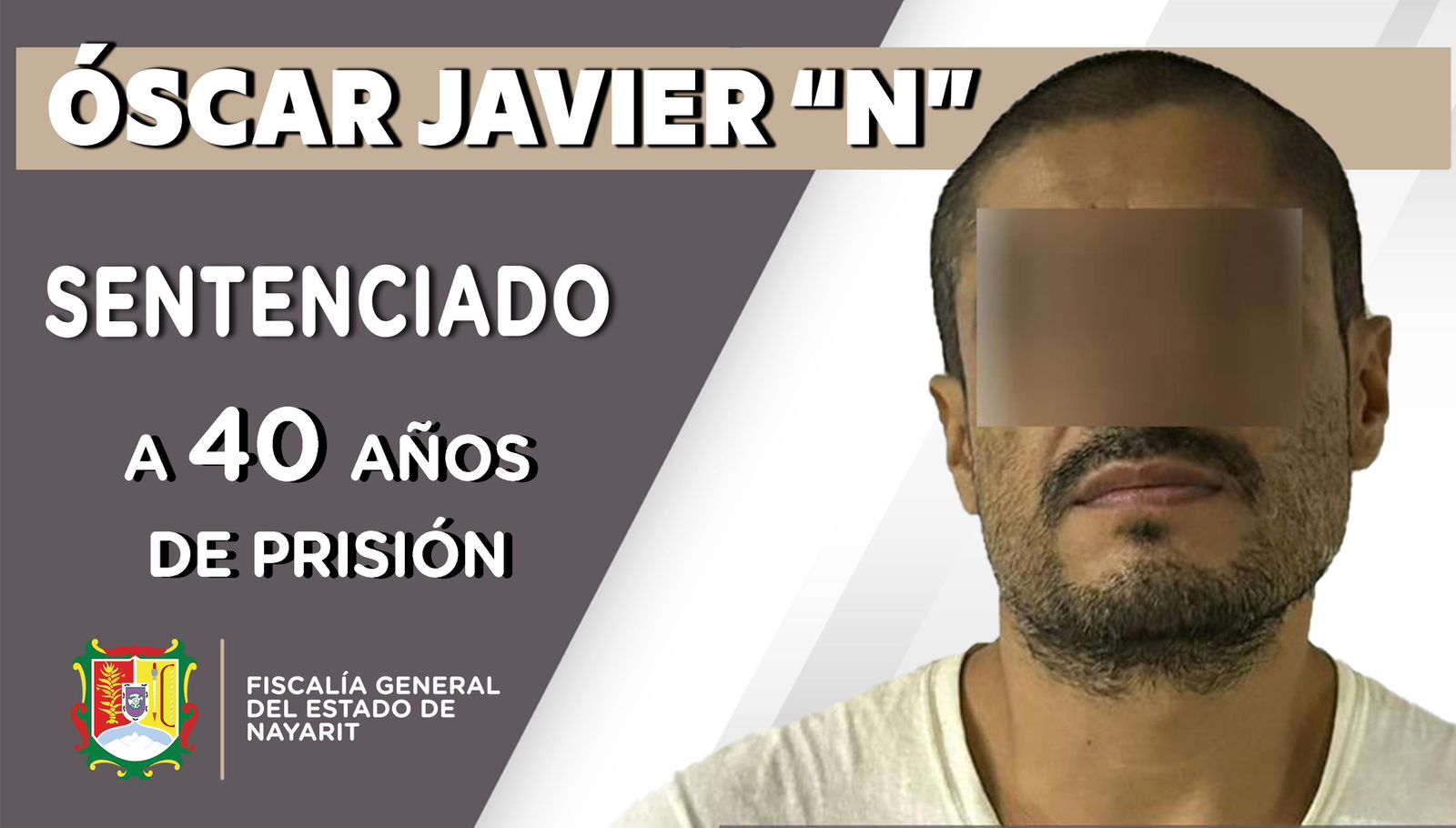 La Fiscalía General del Estado de Nayarit obtuvo una sentencia de 40 años de prisión contra Óscar Javier “N”, luego de acreditarse su responsabilidad penal en el delito de feminicidio agravado.