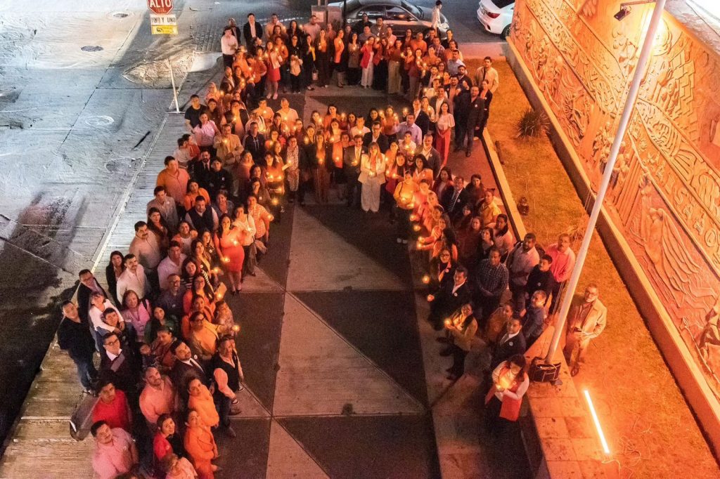 Como acto inaugural, integrantes de los Plenos del Tribunal Superior de Justicia, del Tribunal de Disciplina Judicial y del Órgano de Administración Judicial, acompañados de juezas, jueces, servidoras y servidores judiciales, iluminaron el edificio sede del Poder Judicial y realizaron el encendido de velas naranja, símbolo de esperanza, unión y guía de los esfuerzos institucionales para prevenir, atender y erradicar la violencia de género.