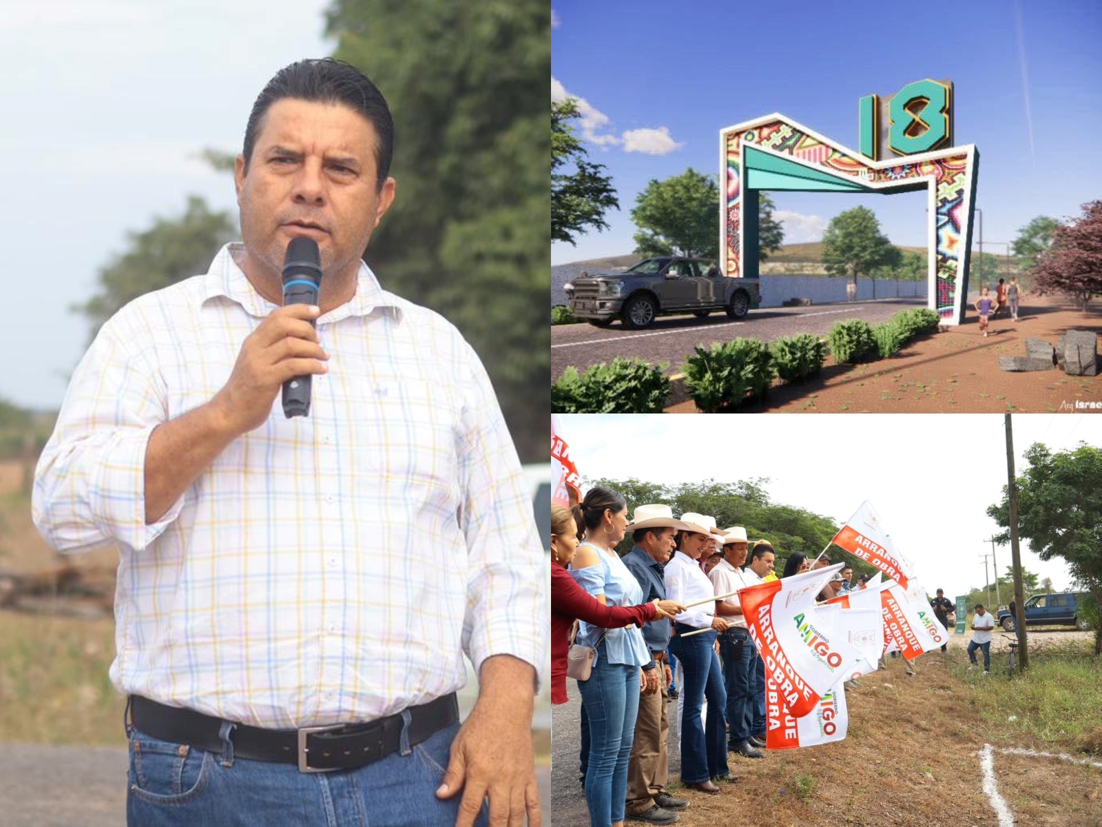 El presidente municipal, Ampelio Gutiérrez, dio este día el banderazo de arranque para la construcción del nuevo pórtico de entrada en la comunidad de Colonias 18 de Marzo.