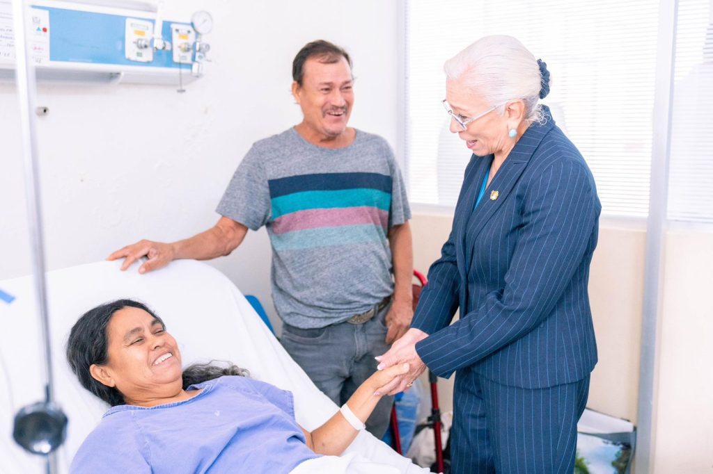Durante el recorrido, la titular de la asistencia social en la entidad destacó que estas cirugías representan una oportunidad real para mejorar la salud, la seguridad y la autonomía de personas que, durante años, habían enfrentado dolor, limitaciones y dificultades para acceder a un procedimiento especializado. La señora María Eron Ramírez Guzmán, beneficiaria de una cirugía de cadera, compartió con gratitud lo que este apoyo representa para ella y su familia.