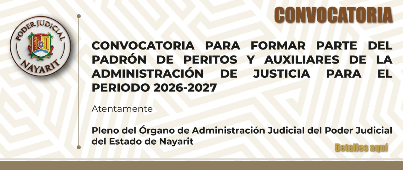 Se encuentra abierto el registro para integrar el Padrón de Peritos y Auxiliares de la Administración de Justicia del Poder Judicial de Nayarit