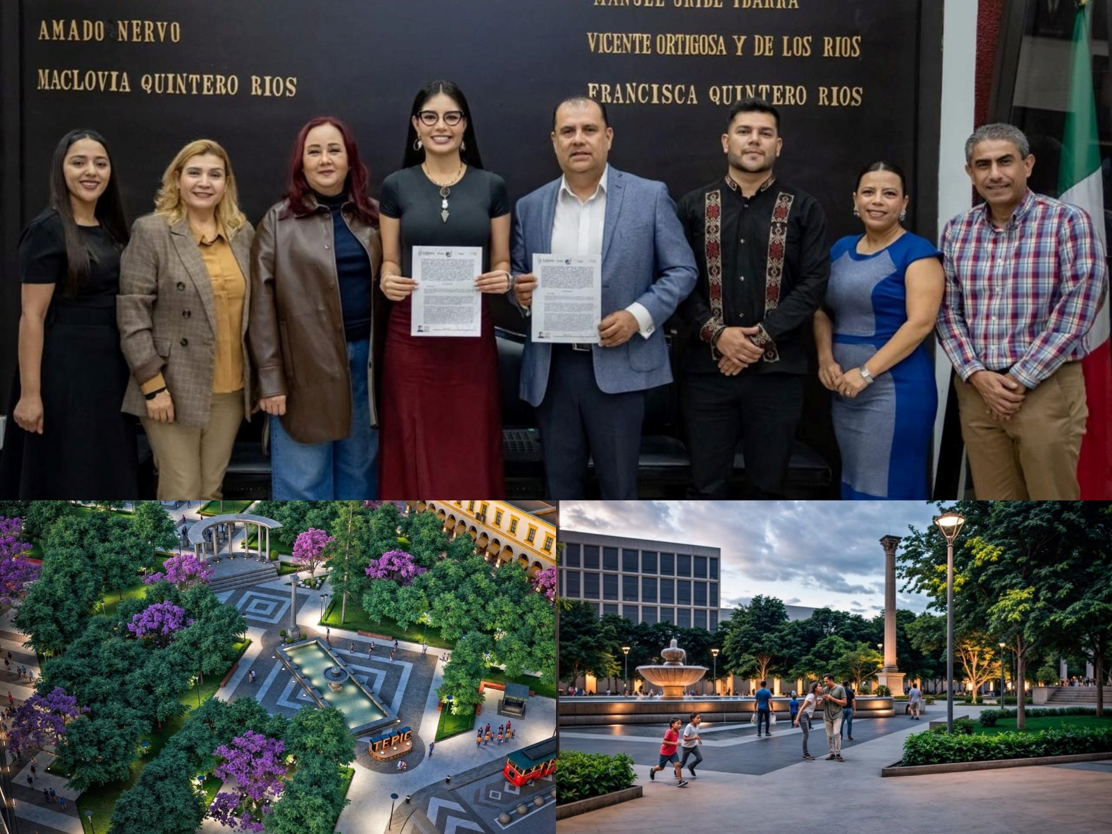 Uno de los proyectos prioritarios será la rehabilitación integral de la Plaza Principal, rescatando sus elementos históricos y embelleciendo el entorno urbano del Corazón de Tepic, como parte de la transformación de la ciudad.