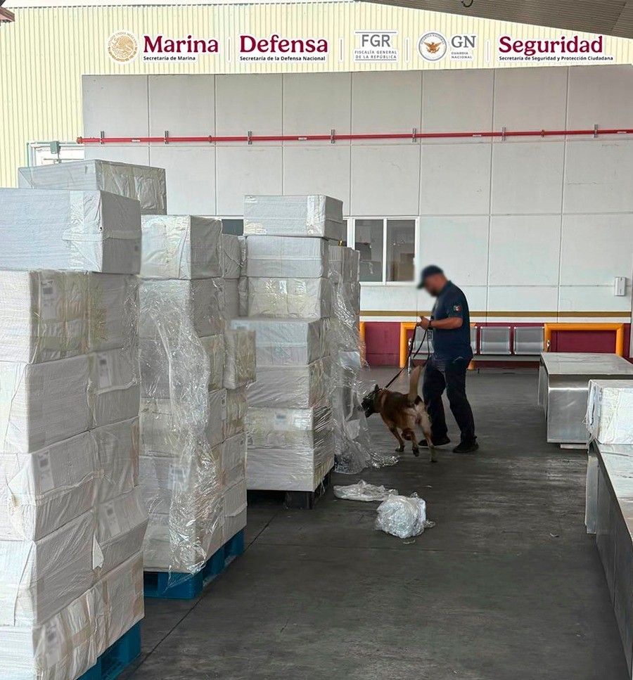 Ciudad de México.- Derivado de trabajos de inteligencia orientados a debilitar las estructuras criminales dedicadas al tráfico de mercancía ilícita, elementos de la Secretaría de Marina (Semar) y la Aduana del Aeropuerto Internacional de la Ciudad de México (AICM), junto con la Secretaría de Seguridad y Protección Ciudadana (SSPC), Fiscalía General de la República (FGR), Secretaría de la Defensa Nacional (Defensa) y Guardia Nacional (GN), aseguraron aproximadamente 19,779.5 kilos de tabaco ilegal.
