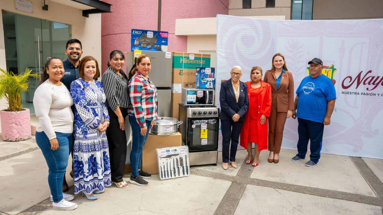 Con el objetivo de mejorar y fortalecer los Centros de Asistencia en el estado, la presidenta del Sistema DIF Nayarit, doctora Beatriz Estrada Martínez, encabezó la entrega de equipamiento como estufas, lavadoras, refrigeradores, hornos de microondas entre otros.