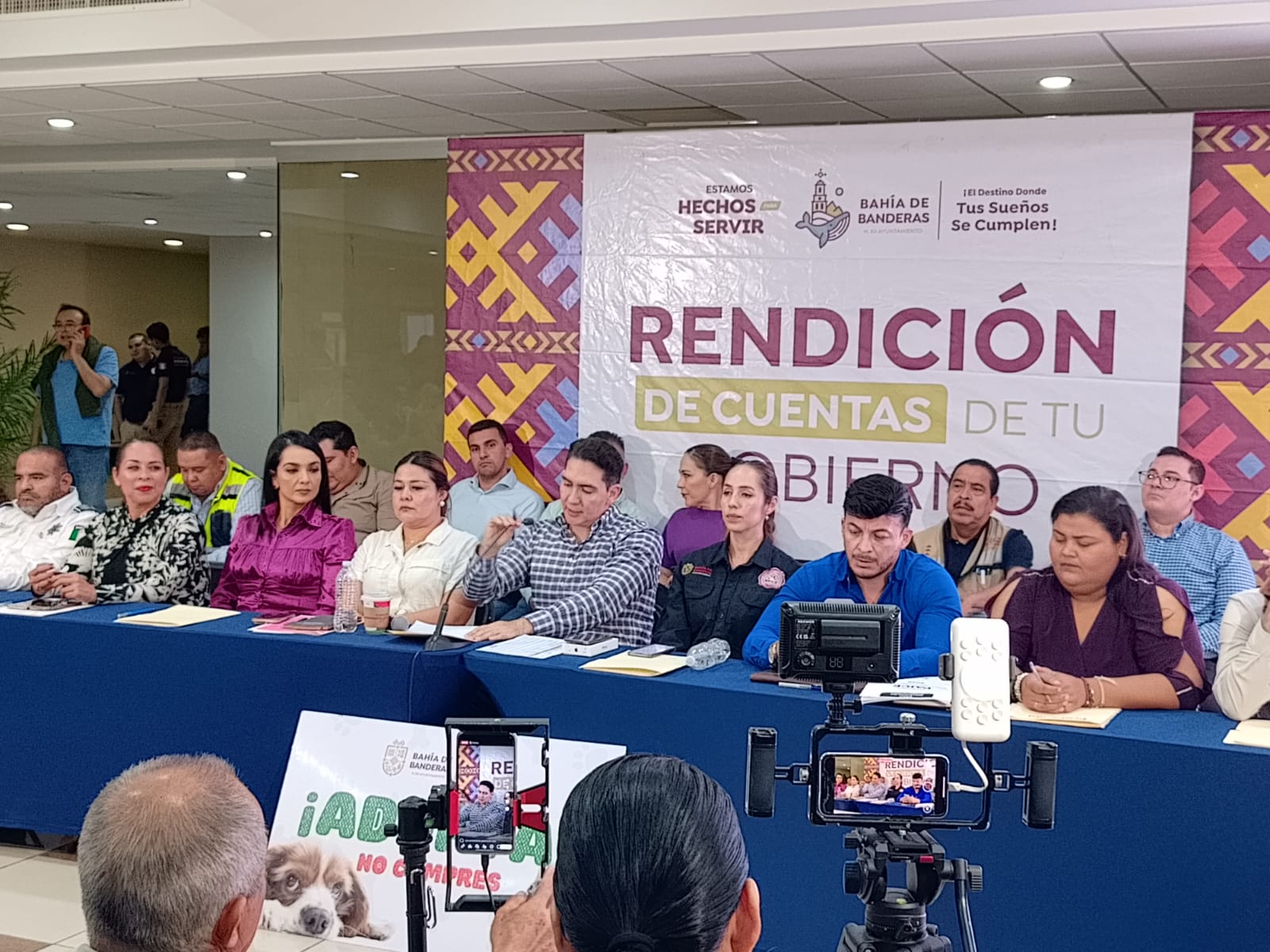 Una vez más Hector Santana García, presidente municipal de Bahía de Banderas, presentó su inédita Rendición de Cuentas, este miércoles, en donde destacó el trabajo y la entrega de los miembros del Cabildo, en apoyar a los ciudadanos. Anunció más calles pavimentadas, mejores sistemas de seguridad para la proteccion de las familias, y canchas deportivas, para practicar diversos deportes.