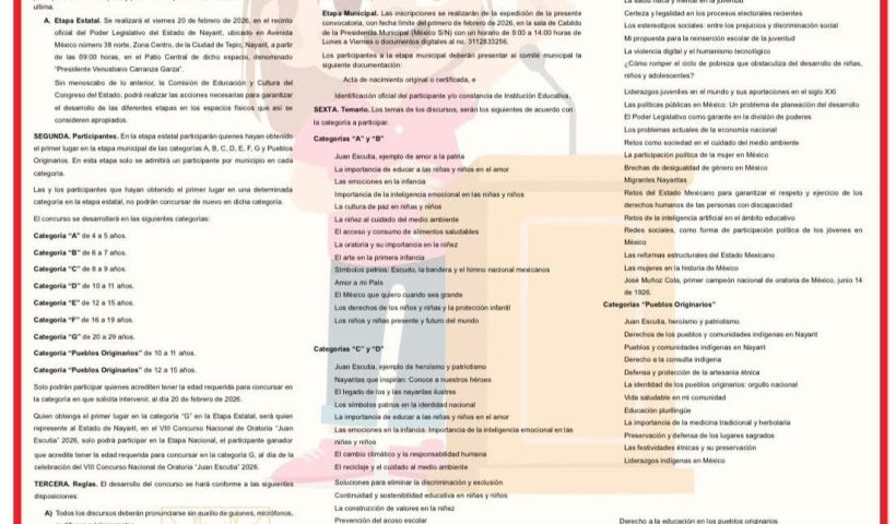 Ver más Ampelio Gutiérrez invita participar Concurso Oratoria “Juan Escutia”Categoría: MUNICIPIOS