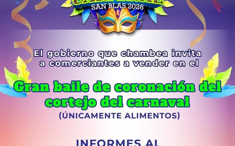 REDACCIÓN El gobierno de San Blas, a través de su presidente, José “Pepito” Barajas, invita a todos los comerciantes a participar en el Gran Baile…