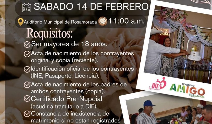 Gobierno Amigo te invita a casarte gratis este 14 febrero