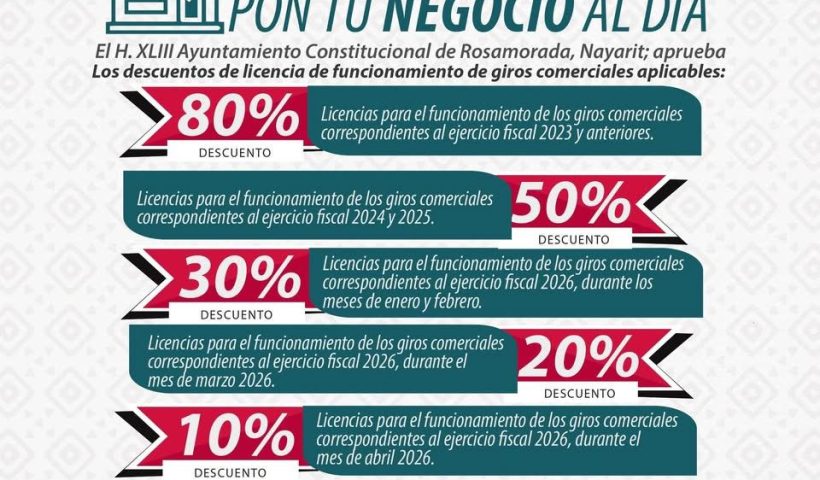 REDACCIÓN El Ayuntamiento de Rosamorada, encabezado por el presidente Ampelio Gutiérrez, aprobó importantes descuentos en licencias de funcionamiento para apoyar a las y los comerciantes…