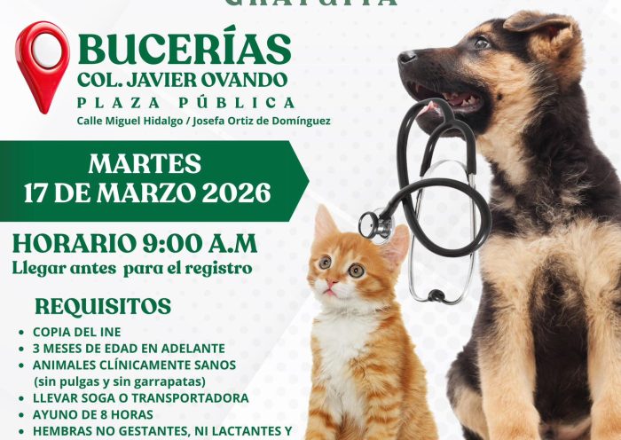 REDACCIÓN El Ayuntamiento de Bahía de Banderas, a través de la Dirección de Medio Ambiente, invita a la Jornada de Esterilización Gratuita para perros y…