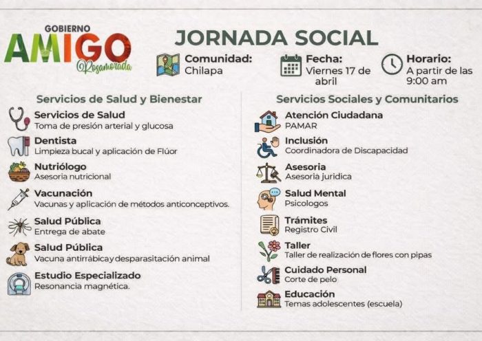 REDACCIÓN El Gobierno Municipal de Rosamorada, encabezado por Ampelio Gutiérrez, convocó a la población a participar en la Jornada Social que se realizará en la…